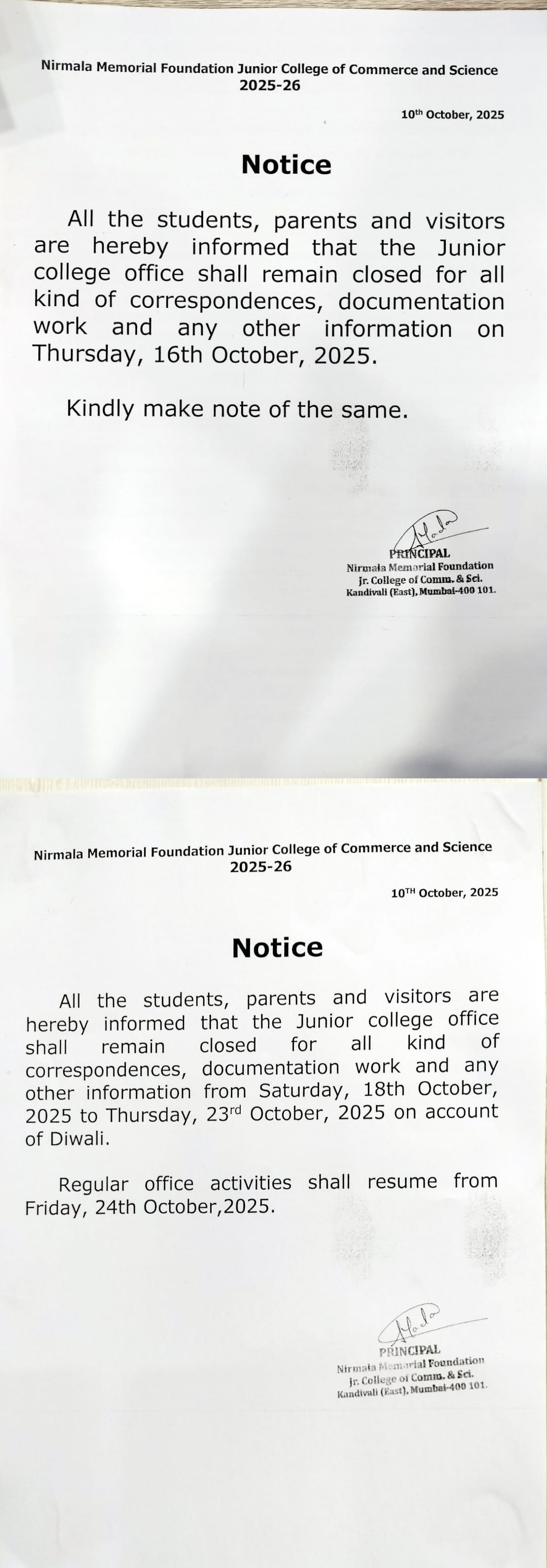 - DIWALI VACATION NOTICE FOR OFFICE CORRESPONDANCE WORK